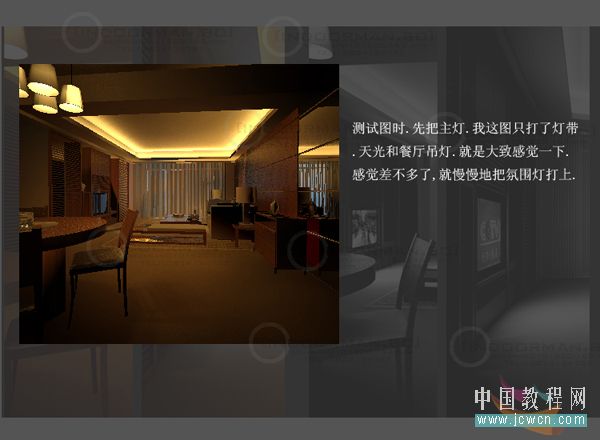 简介:本例为VRay渲染实例教程,主要讲解了室内夜景的表现技法,作者详细讲解了材质和灯光的运用,希望能给朋友们带来帮助~~