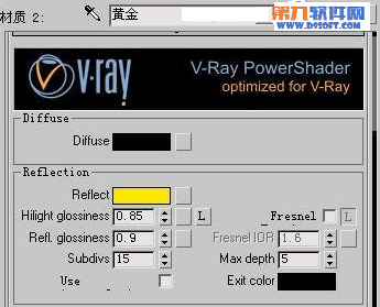 而材质2应设定为黄金材质,材质参数设置如图所示。