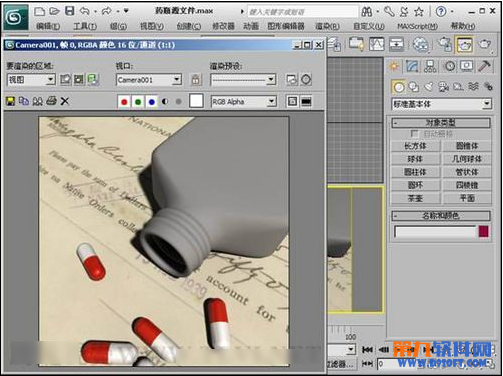 (1)运行3ds Max 2011,打开素材文件“药瓶源文件。max”。