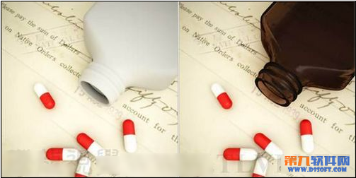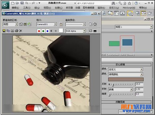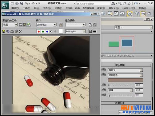 (4)将“玻璃”材质赋予场景中的“药瓶”对象。