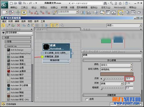 (10)降低“反射”参数,这时玻璃的透明度会有所增加。