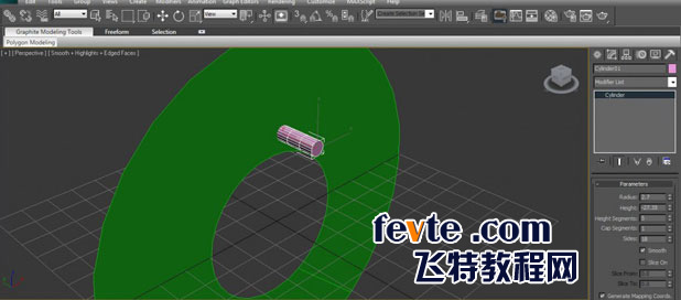 做好环状线圈之后,把这个线圈转换成一个多边形,然后创建一个圆柱体,如下图中的粉红色圆柱体,确保这个圆柱体穿过线圈多边形的中间。