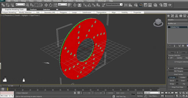 选择好Boolean功能后,你需要再次转换成多边形,选定物体的所有边框,用右下角菜单中的"Extrude",你会得到扩展后的图: