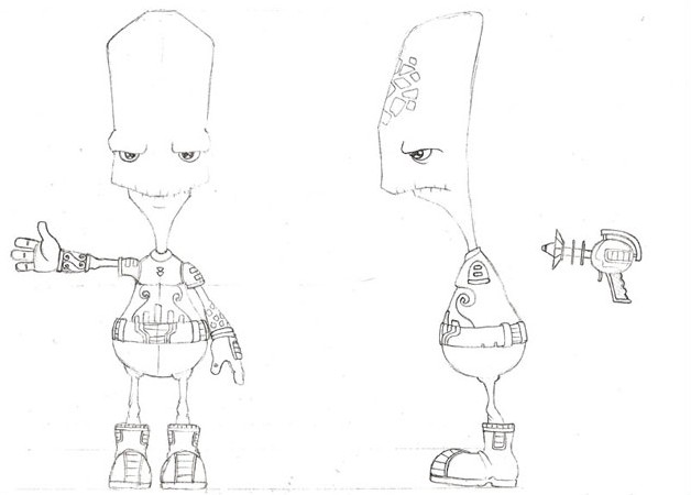 大约半年前。公司的一些同事在讨论是否可能会有一个来自外星文明的生物行驶1000多光年来到地球并且刚好坠毁在罗斯维尔。从这个讨论中我们决定要将这个故事创造出来。在我们的业余时间里。我们要做一个大约4分钟的关于这个外星生物的小短片。而画面中的人物是五个角色之一。