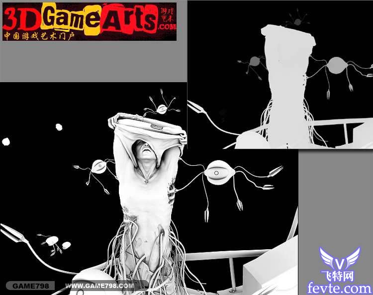 我完成构思设计的后,花费了全天收集各种各样的参考例如人的解剖学图片、人的皮肤纹理、机器和建筑学纹理,环境纹理的我等等。一定,我应该感谢www.3d.sk