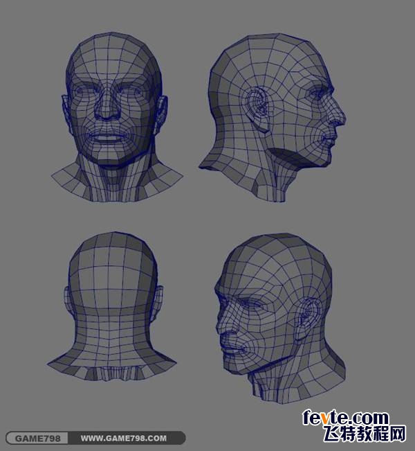 先用低模匹配高模,我们发现低模还是包不住高模,可以稍微用放缩工具放大一点。还有没有包住的那是因为布线少的原因,这时我们要手动的来对点进行编辑,以至于把高模包住,因为人头结构都是对称的,所以在编辑点的时候可以只编辑一半,完成了再镜像过去就好了,在拓扑的过程中对一些多余的面可以进行删除,有些不必要的四边面可以用三角面来结束,这样可以节省一些面。最后在Normels菜单下给一个软边的命令,这样人头头的低模拓扑就OK了。如图: