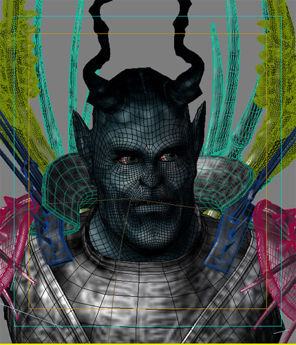 接下来是身体装备的制作。因为做的是静帧,我没用按照原有的设想完成,只单独做了盔甲与四肢。导致后来角色的绑定无法完成动作的设定,这是一个致命的错误。