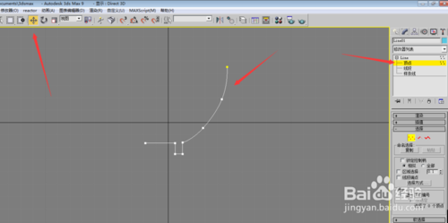 右键装换成可编辑样条线,在顶点下,将轮廓线修改合适;