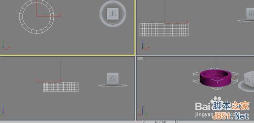 6、现在我们创建底部。在顶视图画出一个圆柱体,设置如下,将圆环移动到相应位置