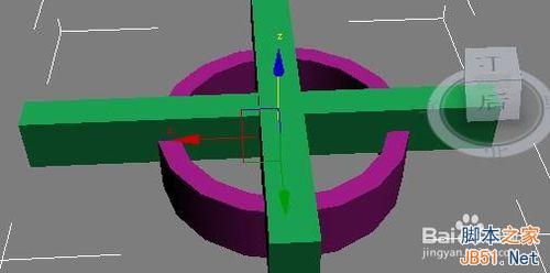 3、按住Ctrl键选中两条长方体,操作栏选择工具按钮,选择塌陷 在选择选中塌陷对象,把它们结为一体。向上移动长方体到圆环中间。