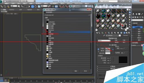 6、选择刚绘制的二维线,然后进入“修改命令面板”—“修改命令列表”—选择“倒角剖面”这个命令,然后点击这个命令里的“拾取剖面”,再点击我们刚根据石膏线绘制的那条直线。