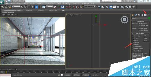 8、找到相机焦距后,点击修改面板display勾上相机选项将相机影藏,这样做的目的是为了建模过程中不移动到相机,改动相机角度。