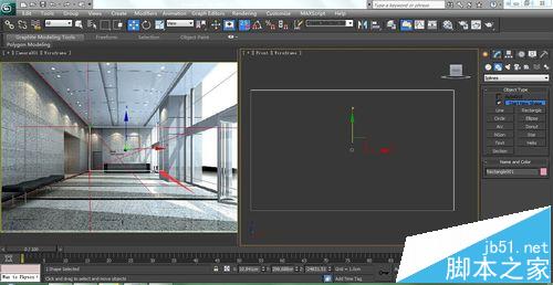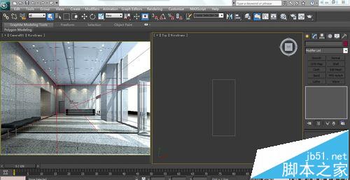 4、在顶视图创建一个box,打一个相机并将导入图的视框切换为相机视图。