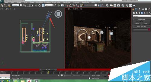 1、在顶视图中创建一相机,在自己觉得理想的角度创建,右击结束创建。切换视窗调整好相机高度,结合相机视图来调整。