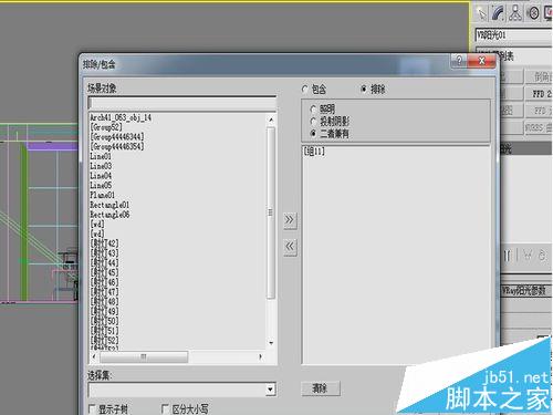 5、最重要的一步,排除这项,如果不排除,参数设的再好,也无济于事,将窗与窗帘、外景组成组,这样更好进行排除。