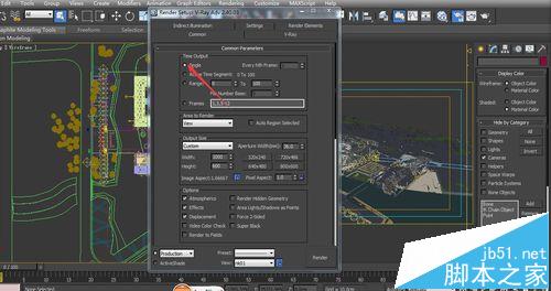 4、首先找到公共面板common中公共参数common parameters的时间输出time output,根据自己的需要设置时间的长度,注意一点就是如果是动画就选择动画或者序列图即第二与第三个选项,如果是效果图就选择第一个选项单帧single 。我主要以单帧效果来作例子。
