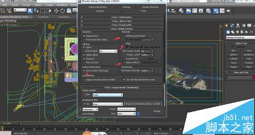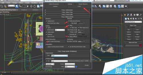 6、找到V-Ray面板下的全局开关Global Switches,将反射、贴图、影响模糊的勾去掉,因为光子图不需要这些,这些会影响运行速度。再将不渲染最终图像打上勾。