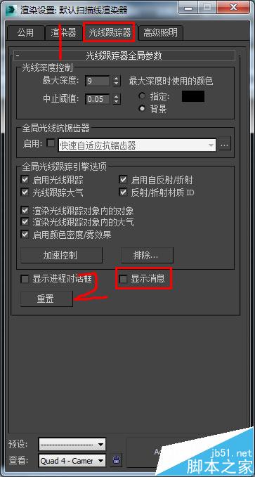 使用max渲染时,有时间经常回弹出光线跟踪的对话框,可以说,有洁癖的人都想把他关掉,就想vr的日志窗口一样,绝对是要关掉的。