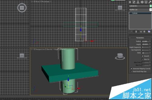 1、首先我们建立两个基本体,一个圆柱和一个正方形,二者混合在一起,可以更好的介绍一下布尔运算!
