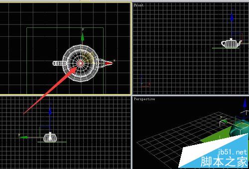 1、新建一个茶壶,我没很容易理解物体的中心就在红色箭头所指的小圆圈内。