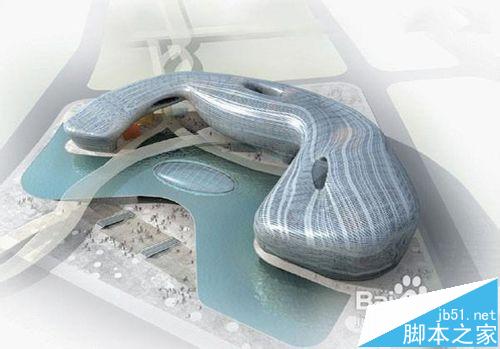 再次将模型转换为可编辑多边形,塌陷当前编辑历史。按2键切换到[边]层级,在视图中选择整个模型,在属性面板的[编辑边]卷展栏中单击[利用所选内容创建图形]按钮,在弹出的[创建图形]对话框中单击[确定]按钮,将模型上的边线转换成线形,如下图所示。选择线形,在属性面板的[渲染]卷展栏中选择[在渲染中启用]和[在视口中启用]选项,设置[厚度]值为40.0mm,[边]值为3。在材质编辑器中赋予线形一个浅灰的材质,通过简单地渲染便得到一个表面有着复杂纹理的异型建筑,最终效果如下图所示。