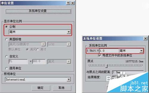 执行菜单[自定义]|[单位设置]命令,设置[公制]为毫米,设置[1 Unit]的单位为毫米,如下图所示。单位设置完成后,即可将CAD图纸导入到3ds Max中,对齐三视图图纸。
