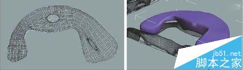 切换到边界级别,选择洞口边缘上的边界线,按住Shift键并在视图中向下拖曳,同时配合缩放工具进行缩小,然后继续往下拖曳一定距离,这样便在模型上制作出一个洞,同理,制作出其他位置上的孔洞,制作时要注意孔洞在模型内的朝向。处理完所有的空洞后,为模型赋予一个基础材质,在修改堆栈中单击[网格平滑]左侧的灯泡图标来显示平滑效果。