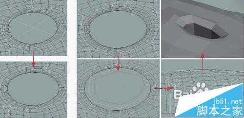 进入多边形的顶点层级,在顶视图中选择模型上的顶点,利用切角顶点调整切较量数值。调节切角边缘上的顶点,然后切换到[面]层级,选择其中的一个面,进行细化调整。调整细化后增加的顶点的位置,然后删除中间的一个顶点。