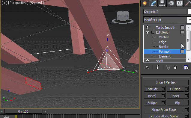 加上壳(shell)命令,给出一定高度,添加涡轮平滑(TurboSmooth),我们看到边角已经出现了光滑效果。