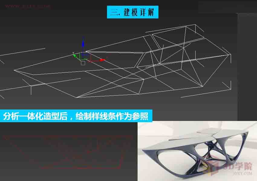 三. 建模详解:分析一体化造型后,绘制样线条作为参照