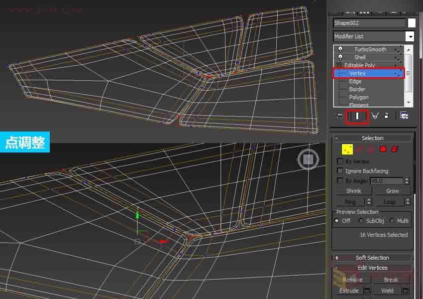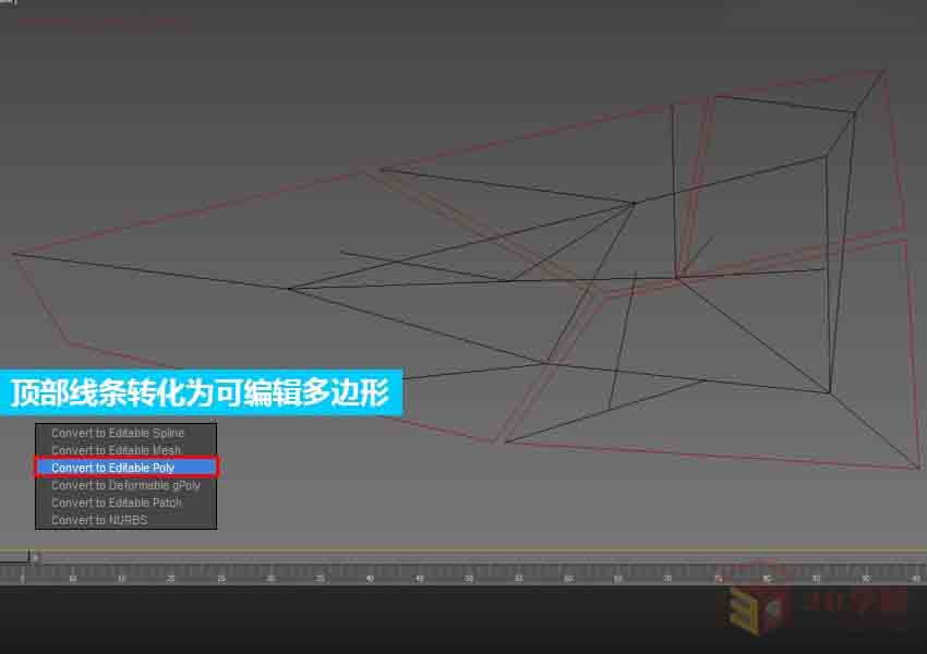 对边缘的点转直角,顶部线条转化为可编辑多边形。