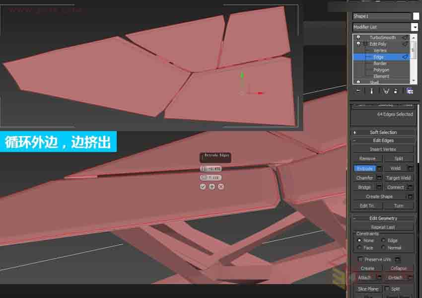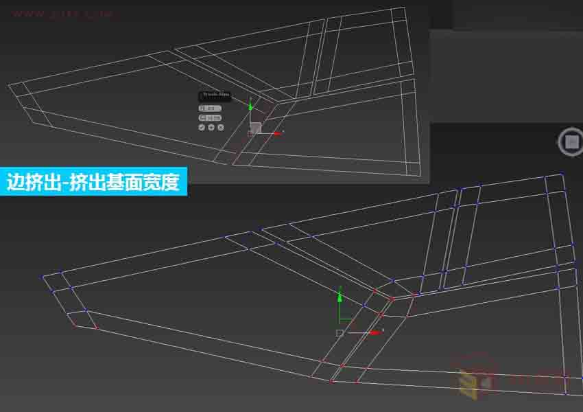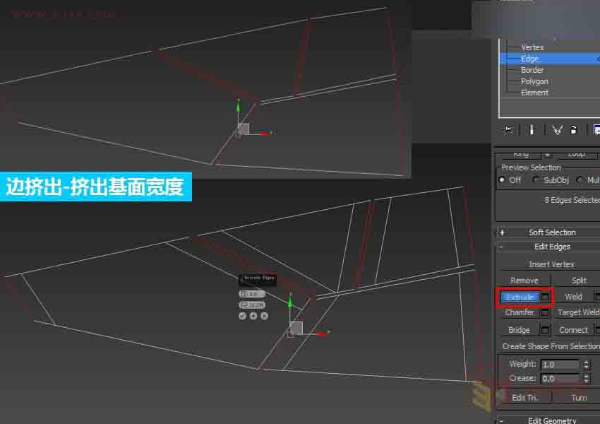 边缘进行边挤出,高度设置为0,挤出基面宽度。