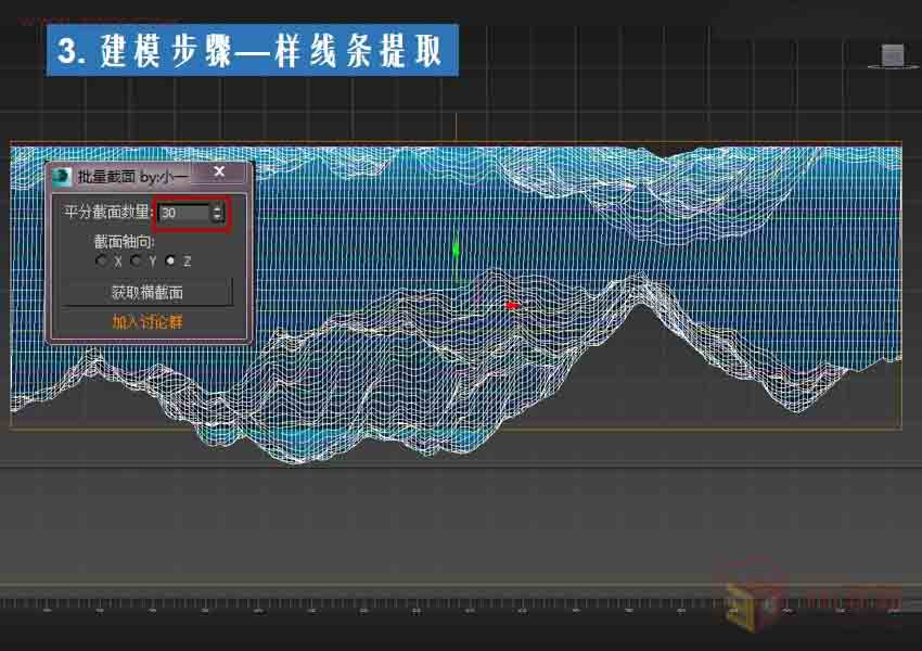 第九步:现在对模型进行批量横截面,小一的插件点击下载→【脚本插件】3ds max 批量截面工具,注意截面轴向。