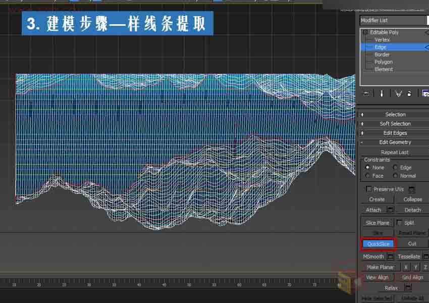 用小一的插件的横截面作为标准,在边级别下,用快速切割(QuickSlice)配合捕捉切出横向的线。