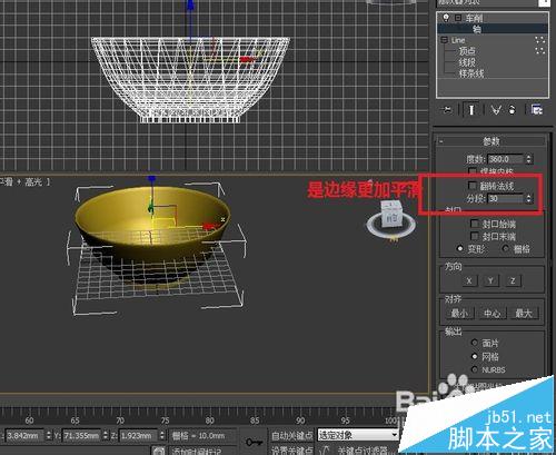 6、在右边修改面板将分段数改为30,使碗的边缘更加平滑。