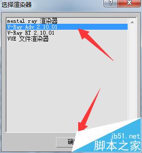 4、在对话框中选择vr渲染器,选择好后点击确定