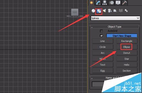3、点击ellipse命令,在前视图里绘制一个ellipse物体,如图所示: