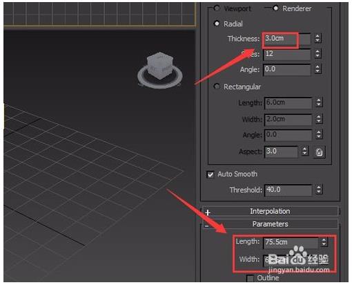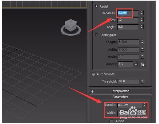 7、选择这两条直线,在modify里设置thickness为4.5,如图所示: