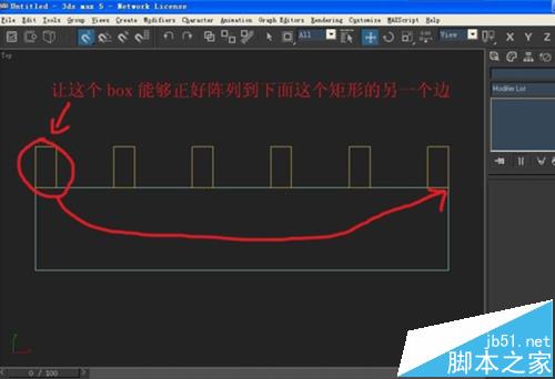 1、让图中红色标识的box能够正好阵列到箭头所指的这个矩形的边。