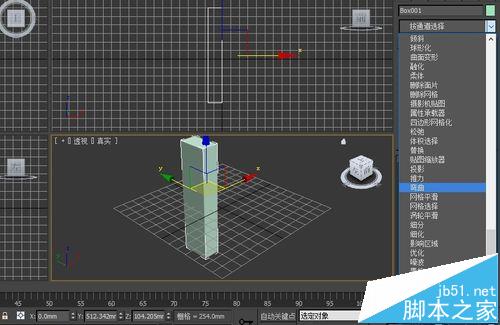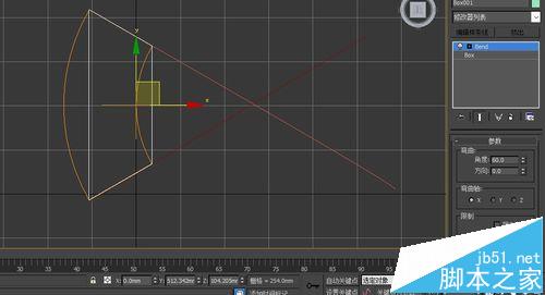 4、我们选择“修改”可以看到弯曲命令的各种参数。我们把角度改为60°,然后弯曲轴改为X轴。在顶视图可以看到物体发生了变化。