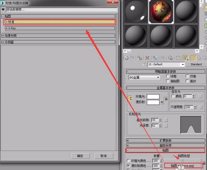 3、同样,材质下的贴图选择项,也须要选择贴图下的标准贴图,不能使用v-ray或其他插件贴图
