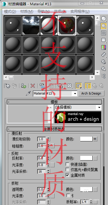 6、如果渲染器选择插件渲染器(mental ray,v-ray)材质,导出的obj格式文件都找不到贴图,mtl文件也不含有贴图信息