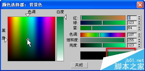 7、然后弹出颜色调板,我们更改成想要的,此处我们为便于说明更改为绿色。然后点击关闭。