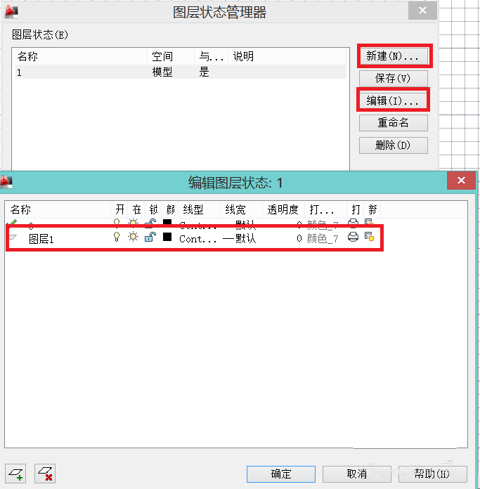 6、在弹出管理器后,可以新建一个图层。点击“新建”按钮后,对该图层进行命名,命名完成后,点击“编辑”按钮。即可进行相关操作。可以根据需要进行设置,每个图层颜色最好不一样,已进行区分。