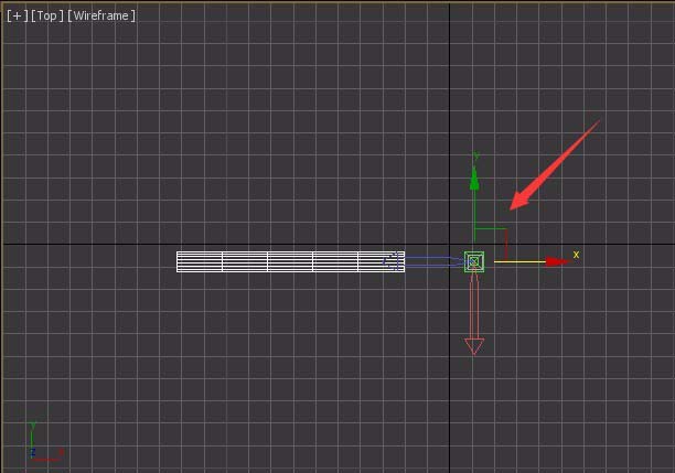 4、点击affect pivot only选项后可以看到视图里的坐标轴变成可操作状态,选择这个坐标轴,调节其位置,如图所示: