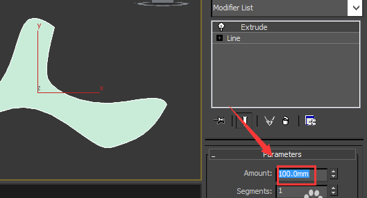 14、点击extrude修改器,在其内设置amount的值为100,如图所示: