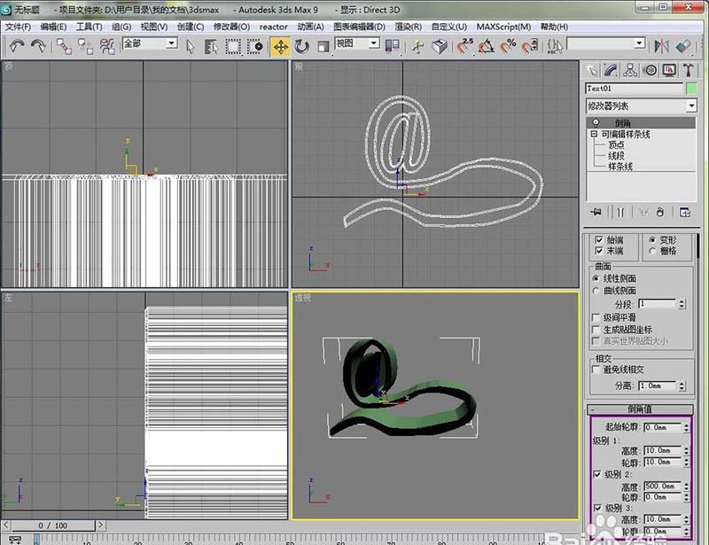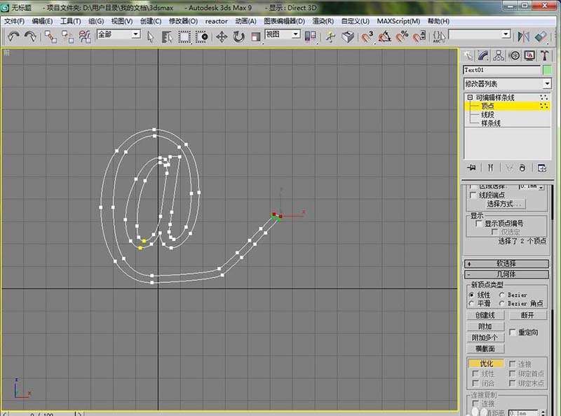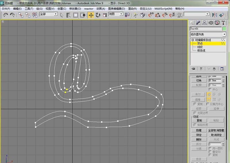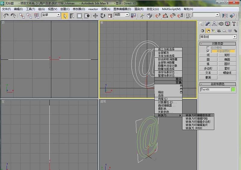4、右击将@转换成可编辑样条线,转换可编辑样条线的方法也有三种,具体可以参照转换成可编辑多边形。