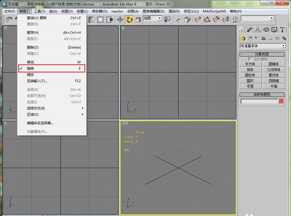 1、我们在编辑菜单栏下可以看到,旋转是快捷键E,那么按E就可以触发旋转工具。