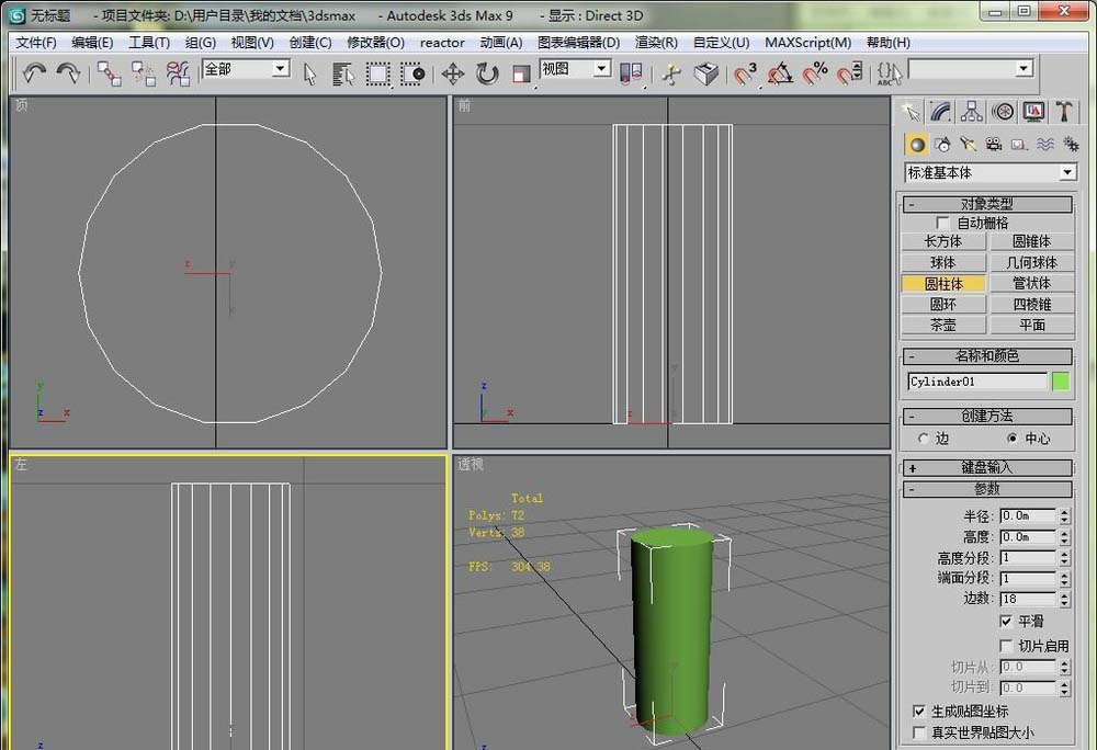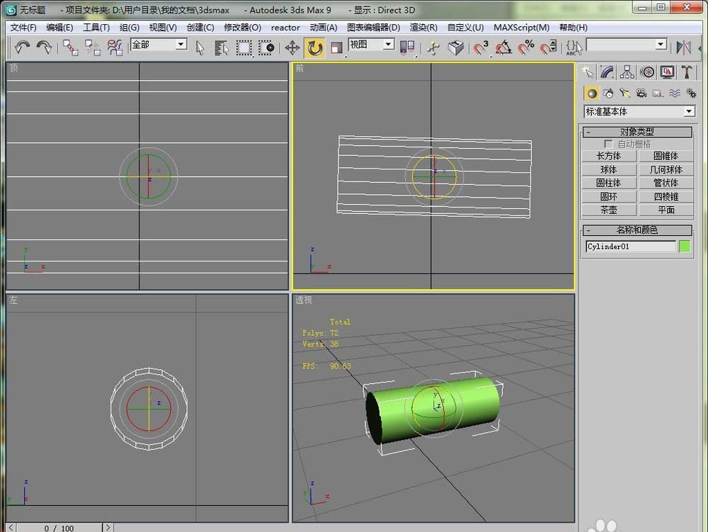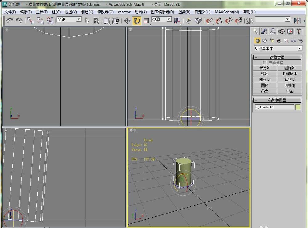 2、然后在视图区里画一个圆柱,我们现在的目是把这个圆柱体变成横着的。