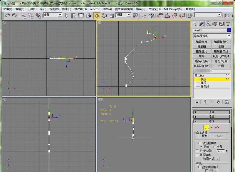 2、在修改器中通过对线的顶点进行微调,来达到最好的效果。